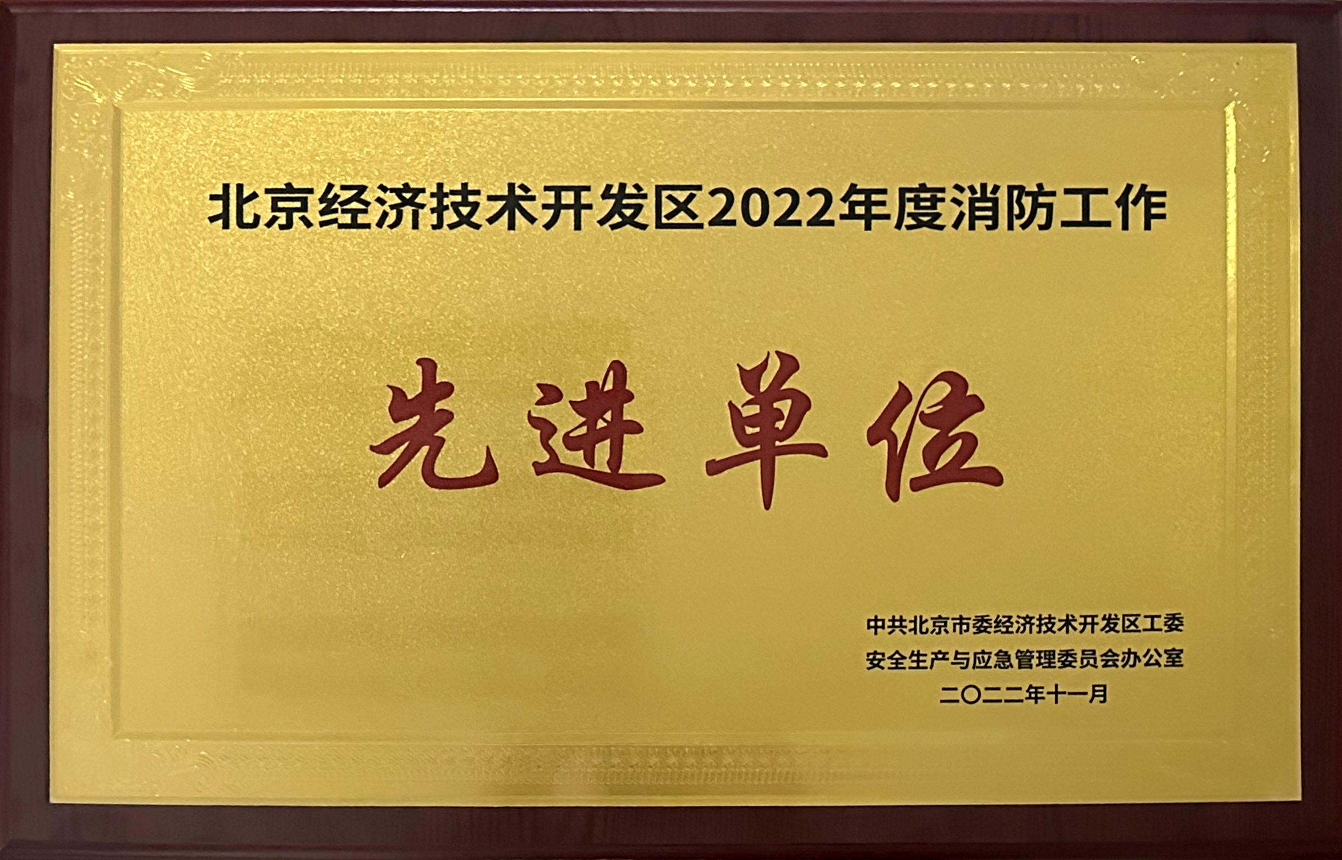 由中共北京市委經(jīng)濟(jì)技術(shù)開(kāi)發(fā)區(qū)工委安全生產(chǎn)與應(yīng)急管理委員會(huì)辦公室為我院頒發(fā)2022年度消防工作先進(jìn)單位。