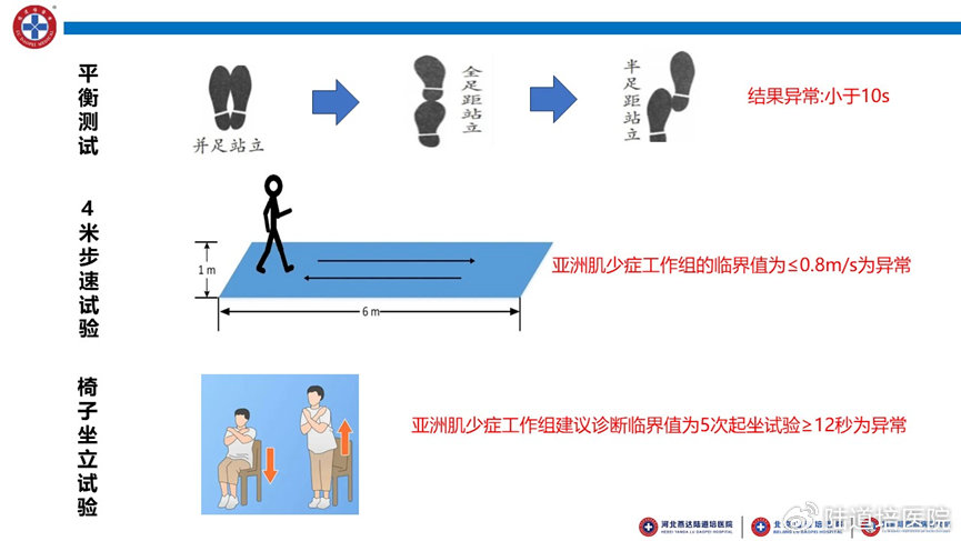 3.亞洲肌少癥工作組推薦簡(jiǎn)易機(jī)體功能評(píng)估法(SPPB)≤9分作為臨界值