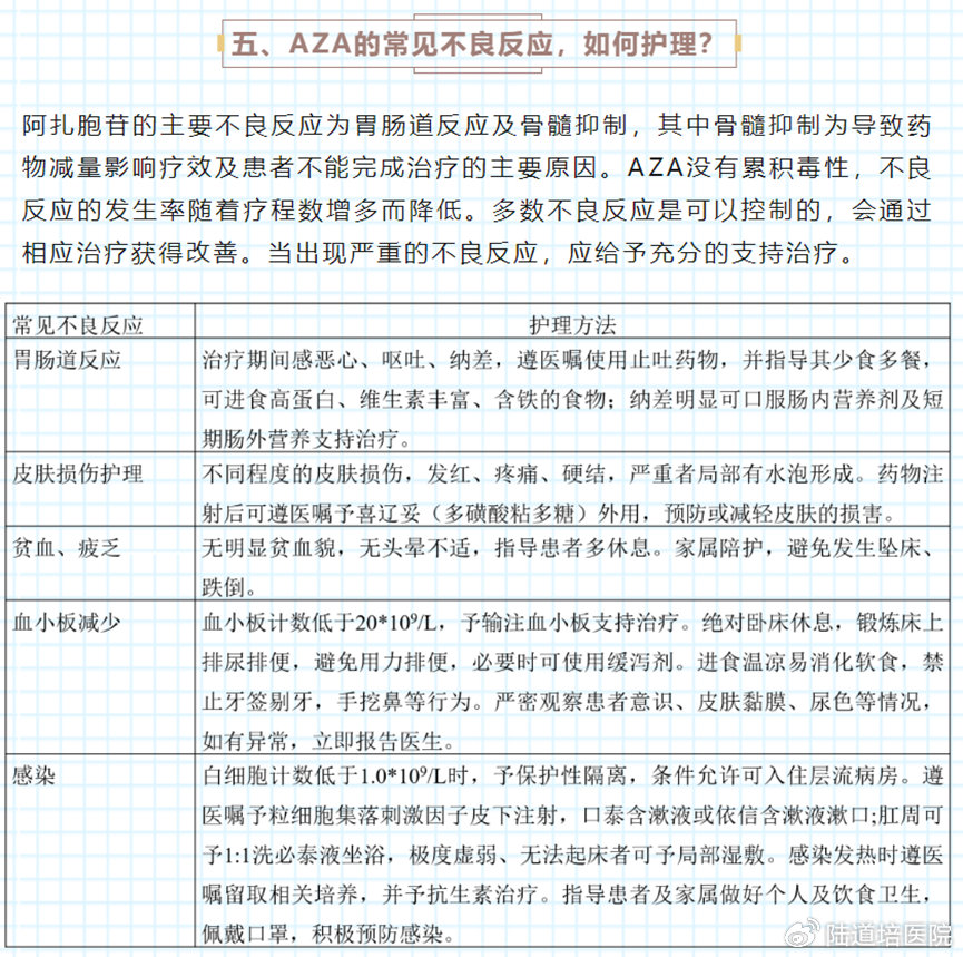 六、使用阿扎胞苷后常見的不良反應(yīng)及相應(yīng)的護(hù)理方法?