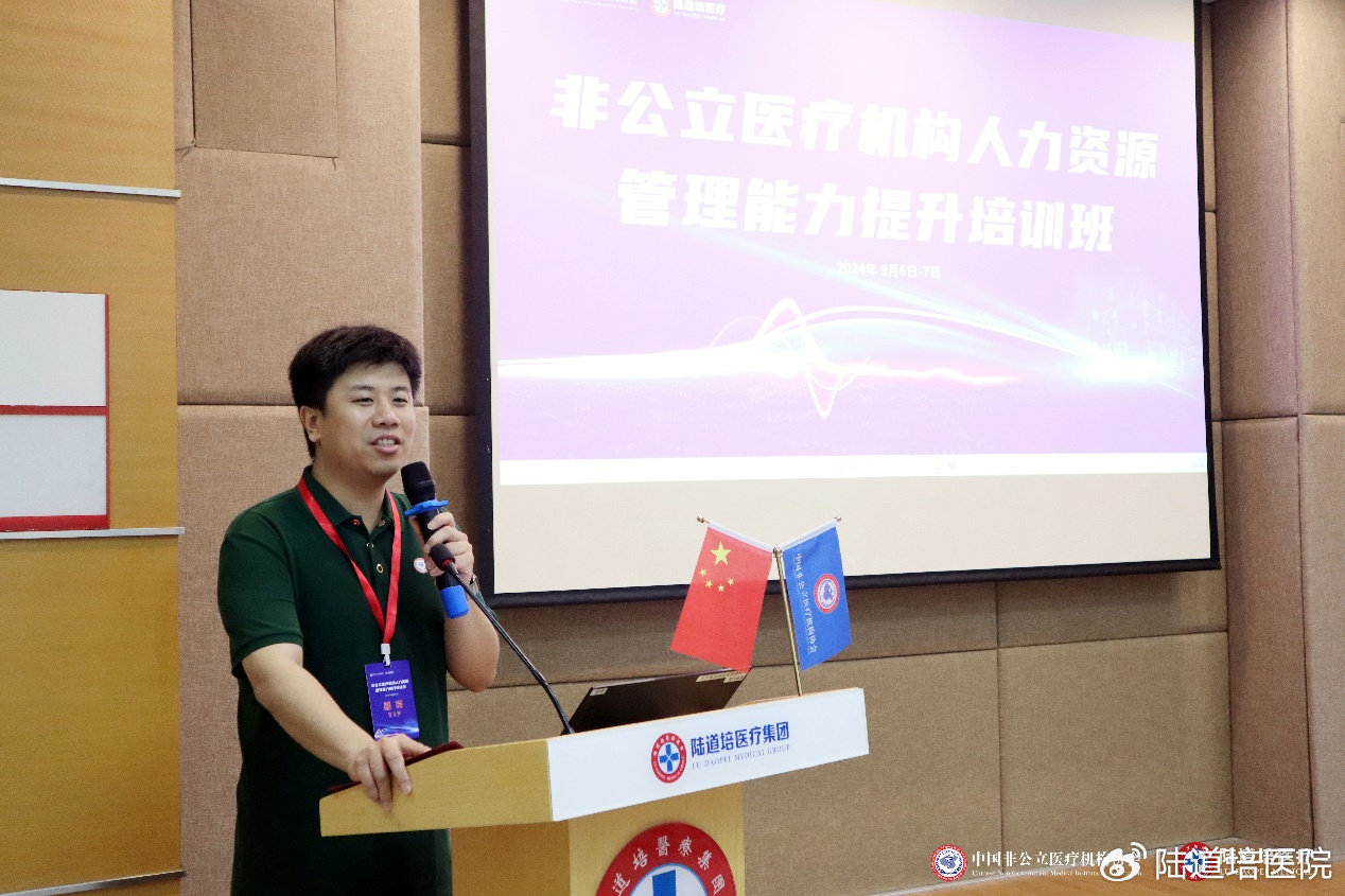 為加強(qiáng)行業(yè)人才鏈建設(shè),進(jìn)一步推動我國非公立醫(yī)療機(jī)構(gòu)人力資源管理的專業(yè)化、精細(xì)化進(jìn)程,提升行業(yè)整體人才管理水平與招聘效率,構(gòu)建高效、穩(wěn)定、可持續(xù)發(fā)展的人才梯隊,2024年9月6日-7日,由中國非公立醫(yī)療機(jī)構(gòu)協(xié)會主辦,陸道培醫(yī)療集團(tuán)承辦,丁香人才提供媒體支持的非公立醫(yī)療機(jī)構(gòu)人力資源管理能力提升培訓(xùn)班在北京陸道培醫(yī)院順利召開。北京陸道培醫(yī)院運營執(zhí)行院長陸鳴岡、陸道培醫(yī)療集團(tuán)副總裁/運營總監(jiān)趙奕參加會議并致辭。