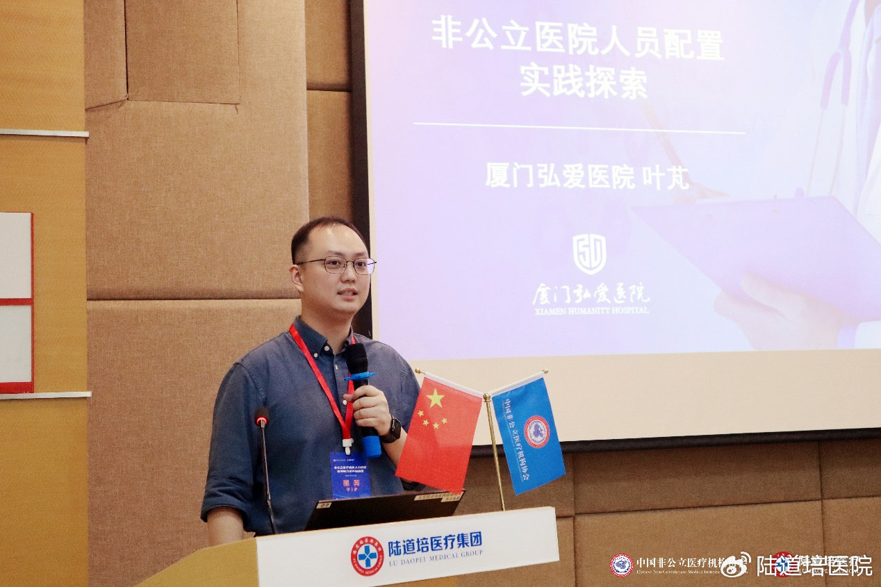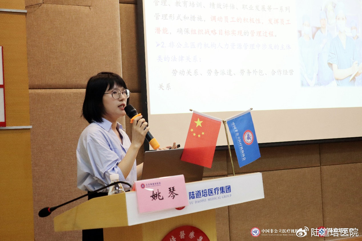 廈門弘愛醫(yī)院人力資源部經(jīng)理葉芃就《非公立醫(yī)院人員配置實踐探索》進(jìn)行授課。