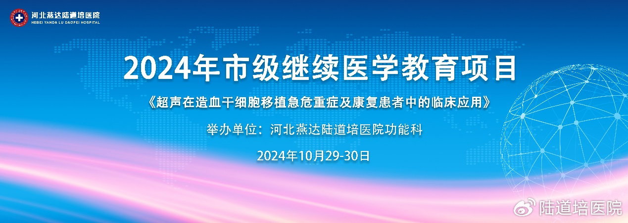 10月29-30日,由燕達(dá)陸道培醫(yī)院功能檢查科承辦的2024年市級(jí)繼續(xù)醫(yī)學(xué)教育項(xiàng)目——“超聲在造血干細(xì)胞移植急危重癥及康復(fù)患者中的臨床應(yīng)用”在6號(hào)樓會(huì)議室如期舉行。本次繼續(xù)教育的主題是當(dāng)前醫(yī)學(xué)研究的熱點(diǎn),也是臨床實(shí)踐中的難點(diǎn)。它涉及到的不僅是技術(shù)層面的精進(jìn),更是對(duì)患者全面康復(fù)的深刻探索。來(lái)自臨床一線的100多名醫(yī)生參加為期兩天的培訓(xùn)。